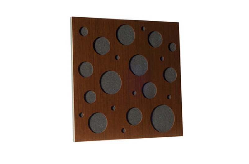 Оригинальная акустическая панель Ecosound EcoBubble brown со стильной, деревянной накладкой, с круглыми прорезями разных размеров. Данные панели широко используются в целях коррекции звука, улучшения его качества и поглощения шумовых эффектов и эха. Производятся из качественного акустического пенополиуретана, полностью безопасного для здоровья человека. Идеально подходят для профессиональных студий звукозаписи, телевидения, радио, кинотеатров. Коэффициент звукового поглощения составляет 0,8. Размер панели составляет 50 см x 50 см, при толщине 7,3 см. Кроме стандартной установки на стены, акустическая панель Ecosound EcoBubble brown, может использоваться в системах акустических подвесных потолков.